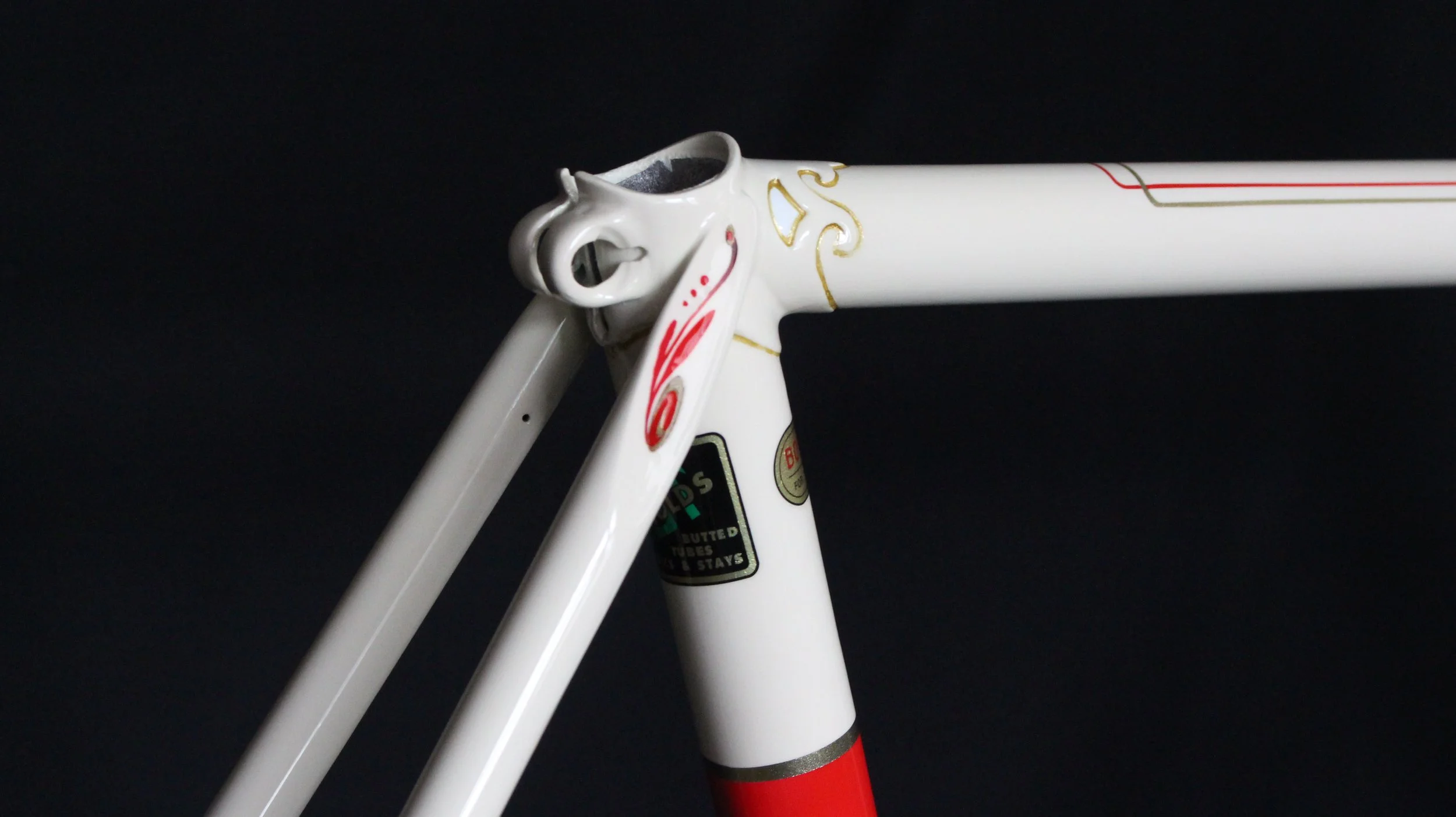 Hand painted and airbrushed Red and Gold wraps, accents, as well as box lining. All surrounded by a nice Cream / White base color.