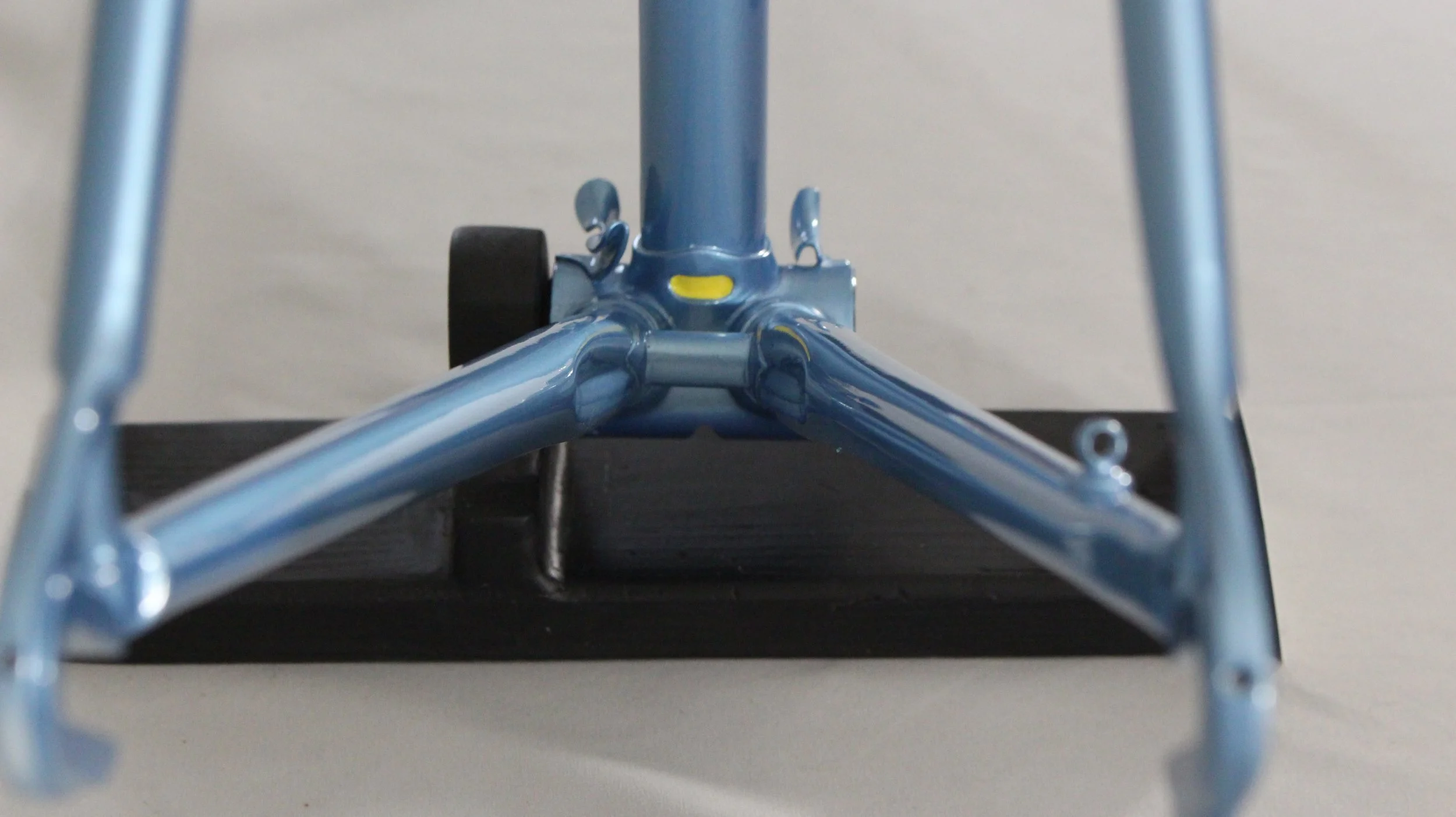 Guerciotti restored in its classic steel blue metallic finish with hand painted yellow accents giving it a simple but really clean look.